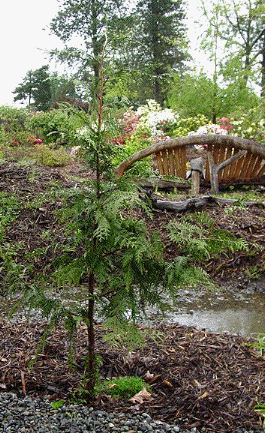 We planted seedling cedar, fir, and hemlock from our Orting house for the new native garden. Click here to see the old growth parent of this tree. |