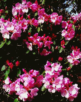 A beautifully mounding rhododendron with dark pink buds, light pink flowers, and bronze new growth
