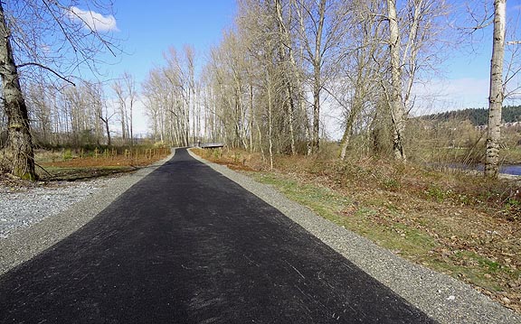 The Sumner White River Trail begins at parking lot adjacent to the recycling center and sewage treatment plant.