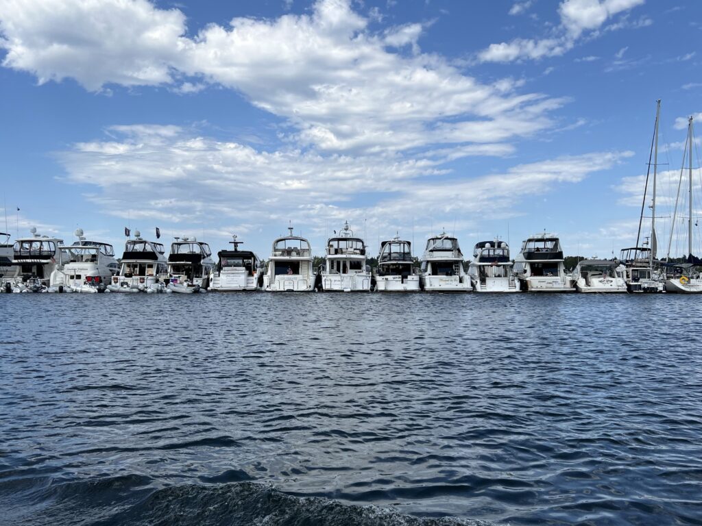 In the early days of the week, visiting boats from “north of the border” and across the Sound arrive, and reciprocal‑club parties begin to unfold on Dock Zero and in the clubhouse lounges.
