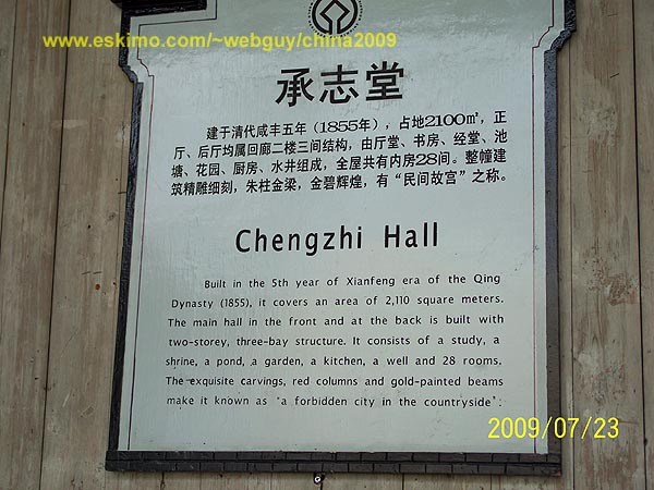 The introductory sign to Chengzhi Hall, the residence in Hongcun